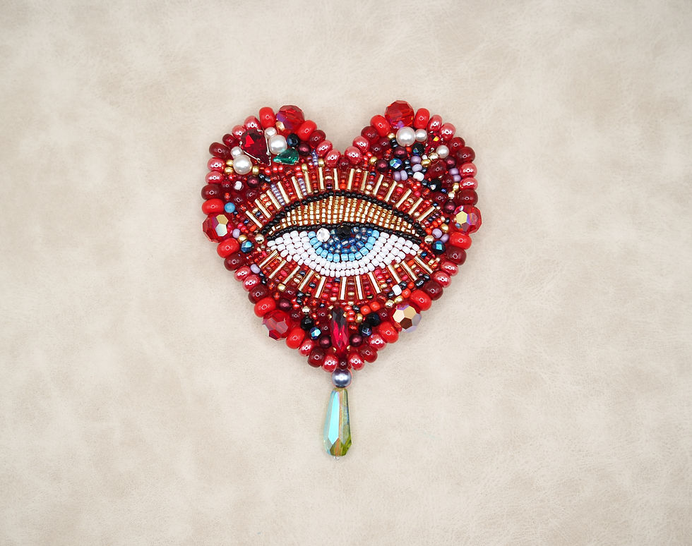 Heart brooch with beaded eye